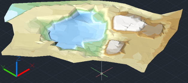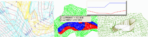 Création de surfaces (maillage ou triangulation) à partir des points, des lignes de contraintes et des courbes de niveau d'un terrain.