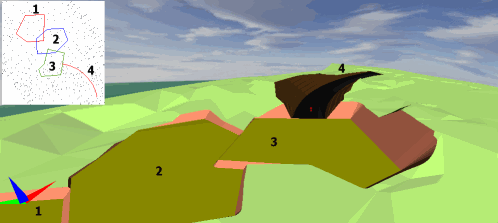 Affichage des zones déblais-remblais ainsi que des frontières entre ces deux zones...