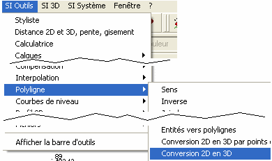 conversion 2D en 3D standard. Menu SI Outils/Polyligne/Conversion 2D