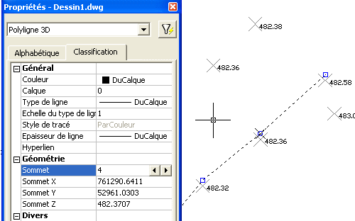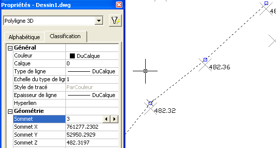 résultat est bien une polyligne 3D dont le Z des sommets est