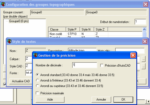 • Ensuite, on modifie la précision d'affichage du Z : on passe à une seule décimale. Fats donc un clic-droit sur « Z ». Le clic droit configure le style. Puis pressez le bouton « Précision » et saisissez « 1 ».
