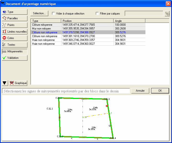 • On ajoute des signes de mitoyennetés : une simple sélection remonte les informations.