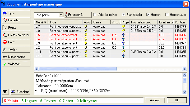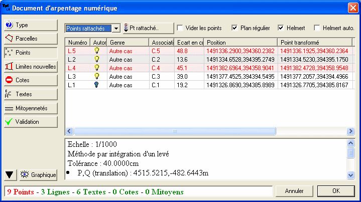 L'assistant récupère les points topographiques et la contenance.