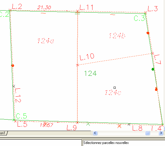 • Dans le cas présent, on divise la parcelle 124 en trois : 124a à 124c. Bien que non obligatoire on va travailler ici par parcelles.