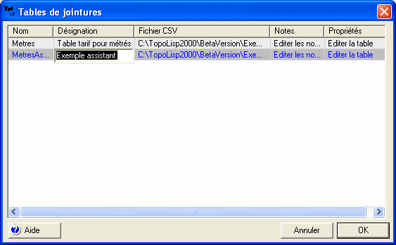 • Avec le menu contextuel (clic droit) ajouter une nouvelle table de jointure. Renseignez le nom, la désignation et le fichiers CSV (ici métrésveget300.csv du dossier exemple).