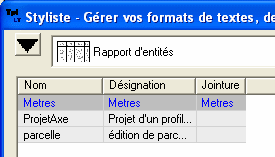 • Les métrés sont en fait des rapports d'entités. Pour le créer, menu SI Outils/Styliste et sélectionnez les rapports d'entités.